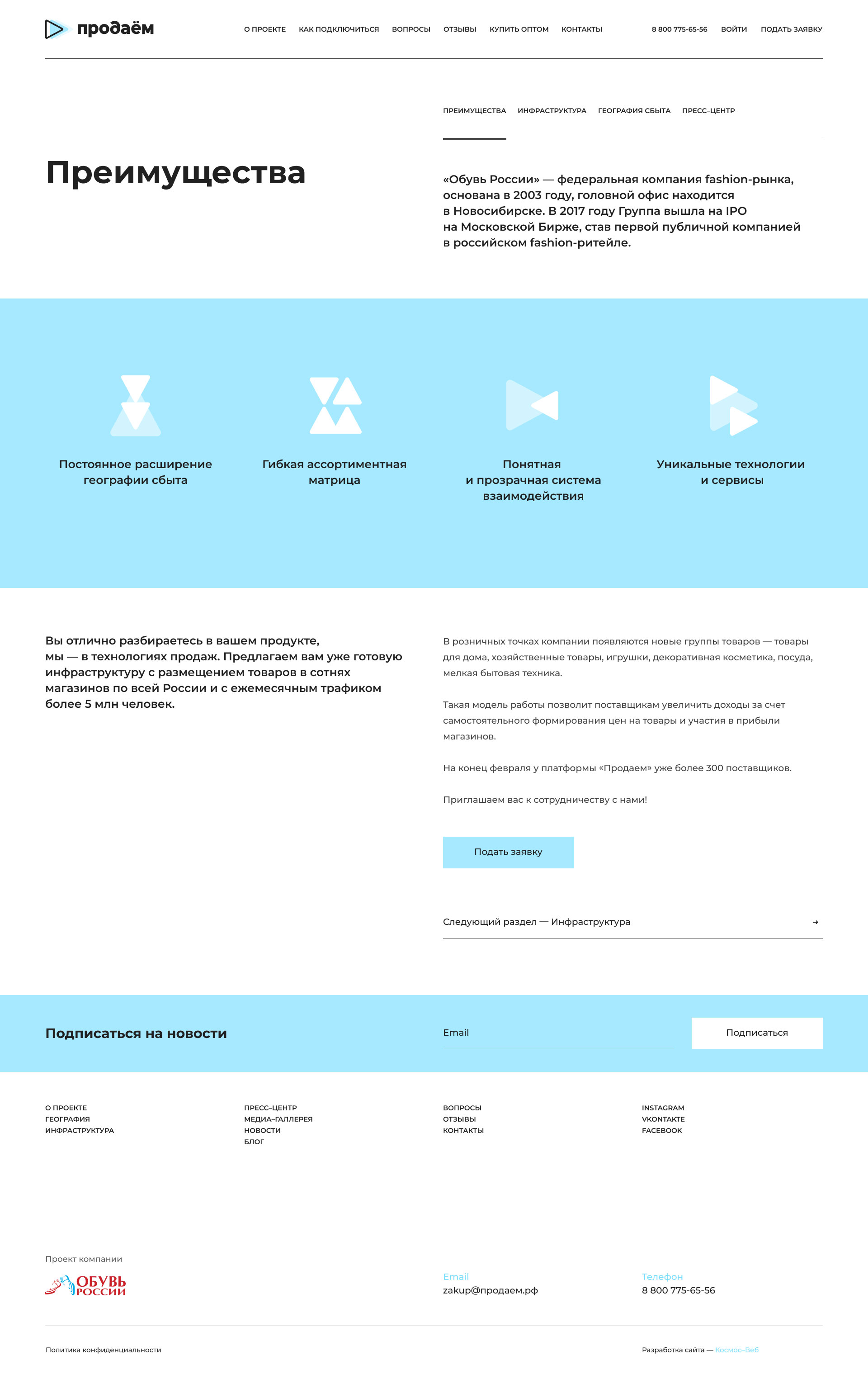 Добавили блоки, посвященные инфраструктуре, поставщикам и географии «Продаём».